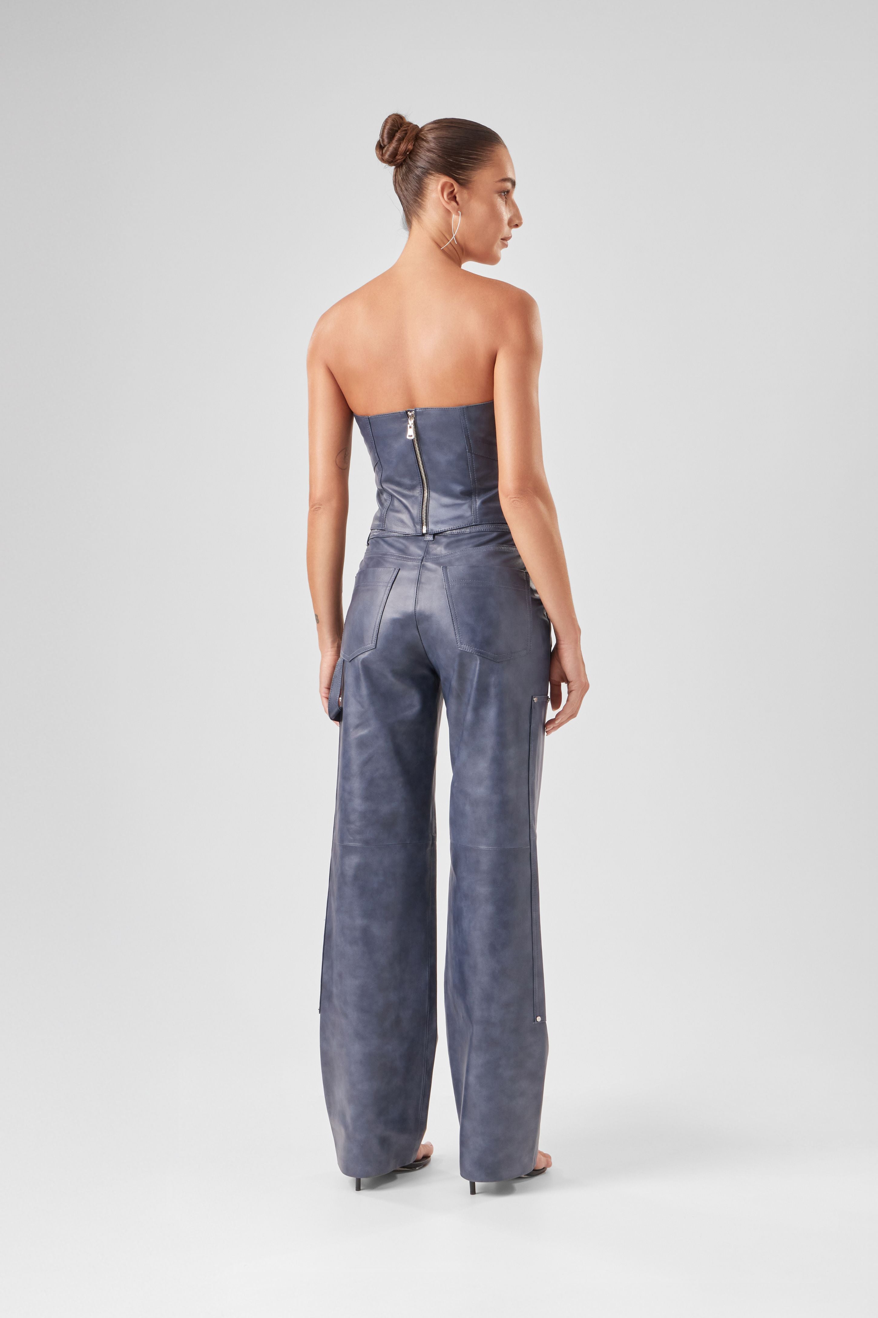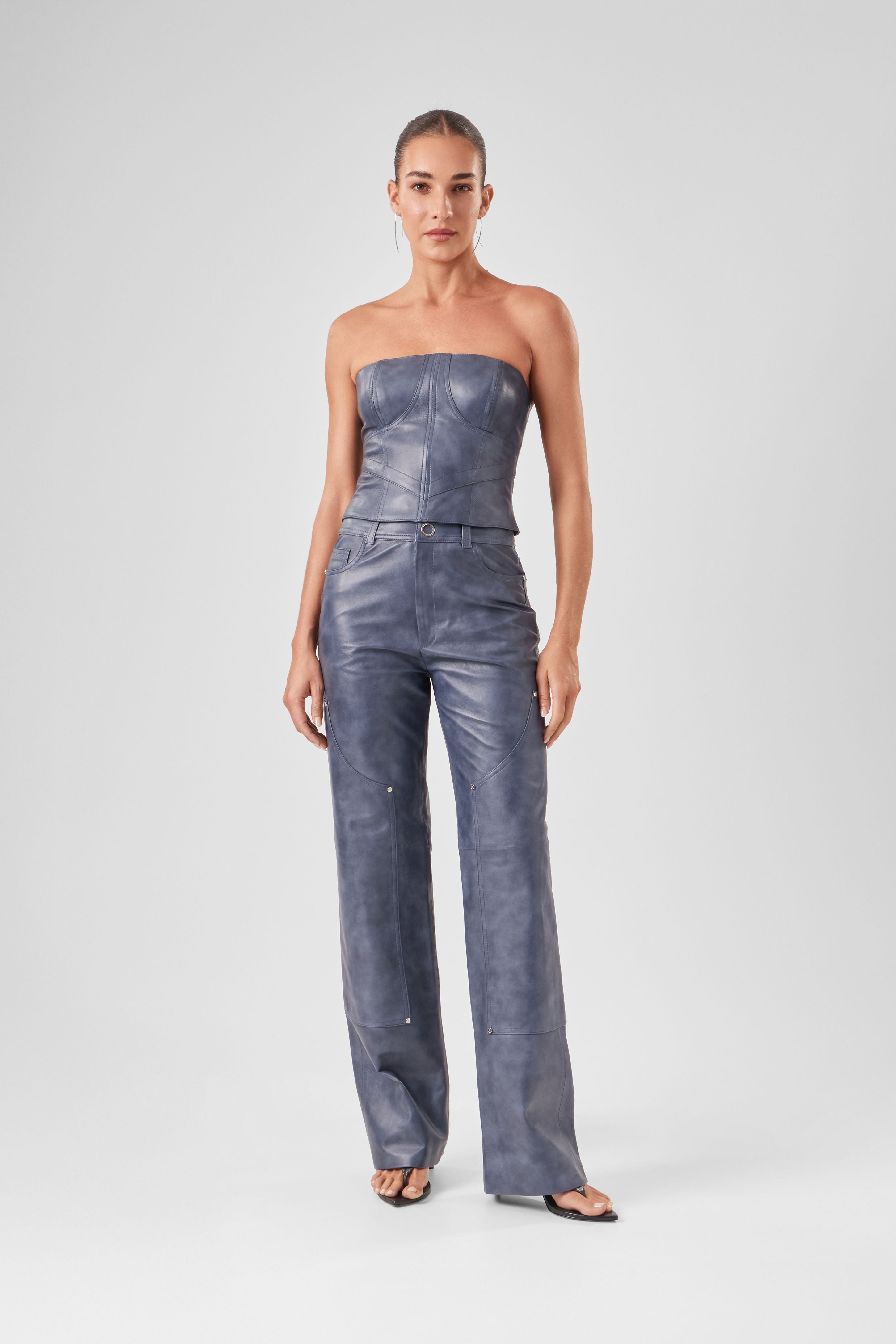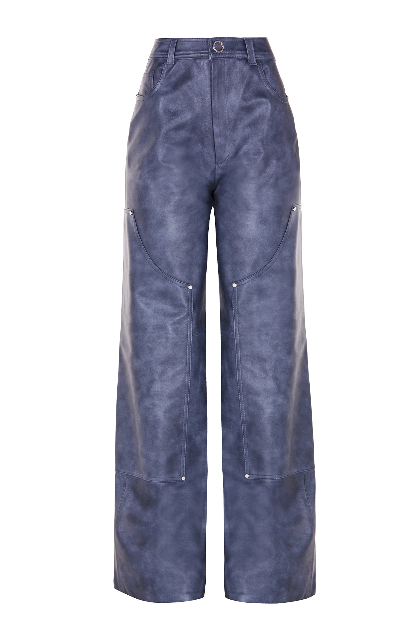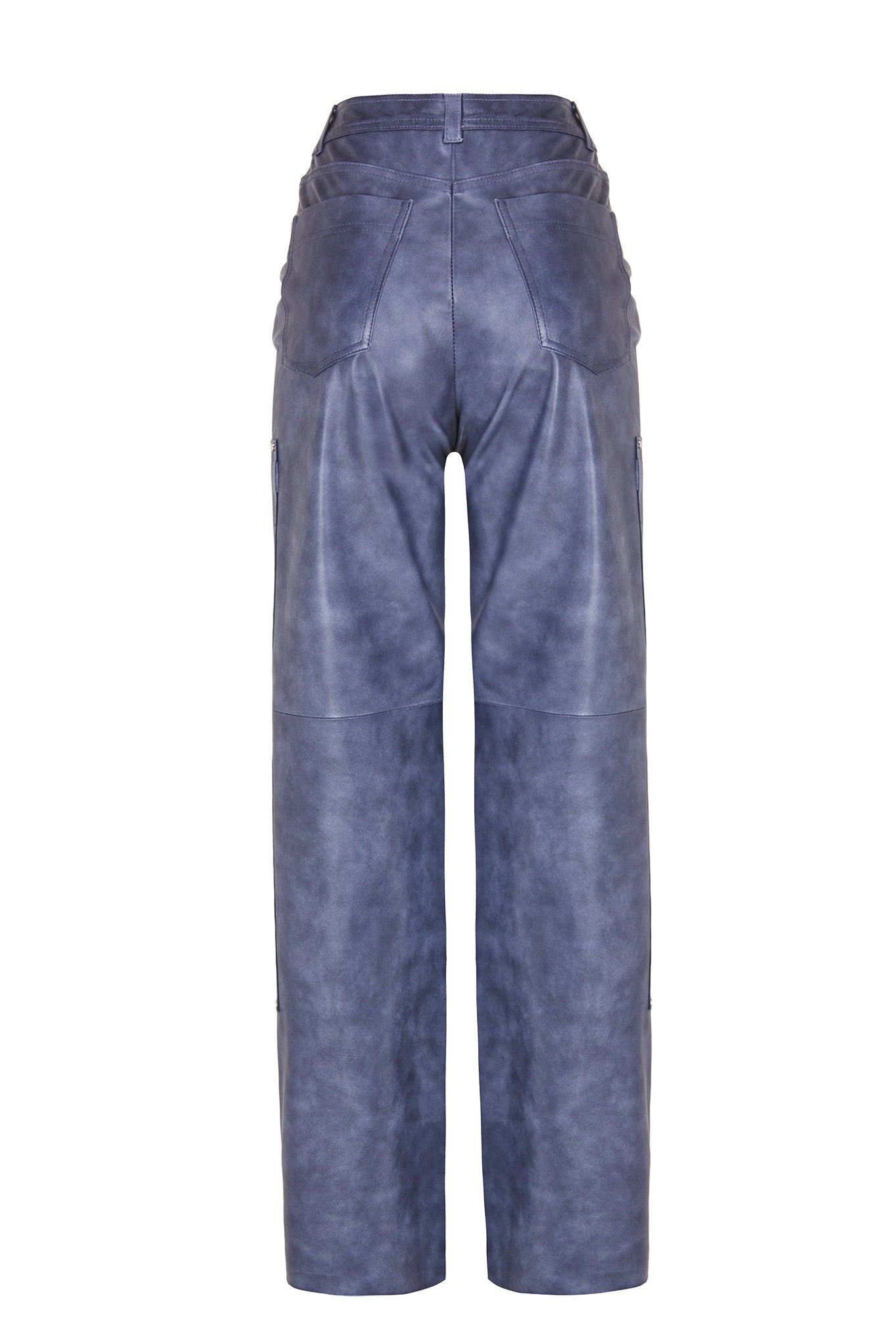 Com shape reto e cintura alta, a Calça Reta Look Closer traz bolsos grandes na frente, conectados aos bolsos traseiros por tiras com rebites de metal. O fechamento é feito por botão vazado e zíper. Produzida em couro com acabamento estonado.