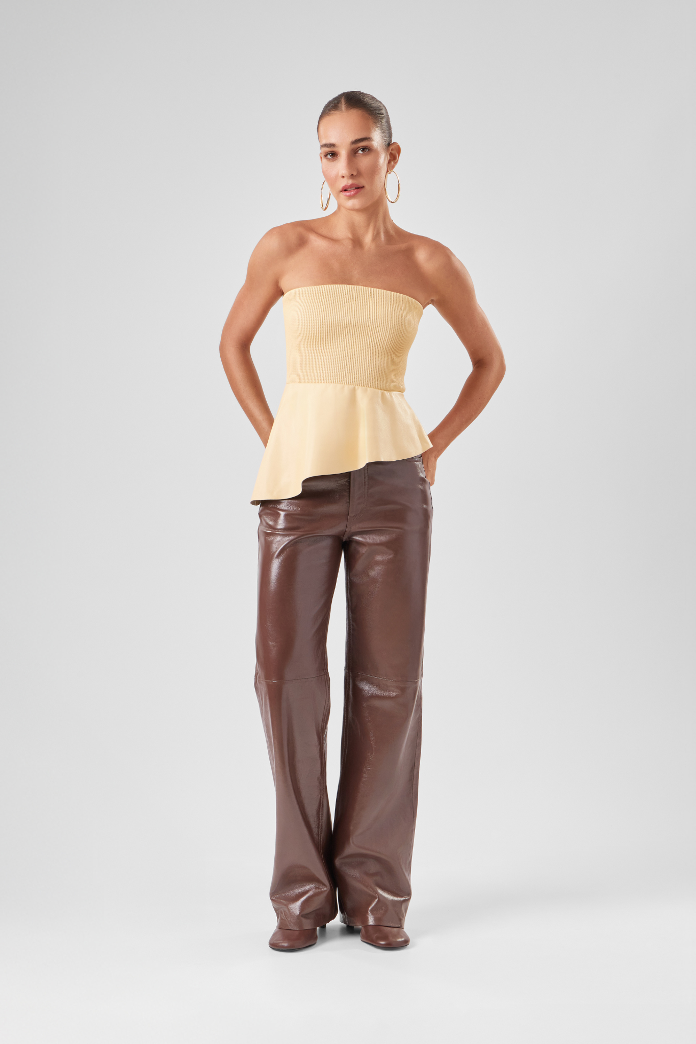 A Calça Reta Off-Screen tem cintura alta, fechamento por botão e zíper, bolsos traseiros para uso diário e bolsos frontais decorativos, incluindo o delicado bolso relógio que acrescenta um toque de sofisticação.