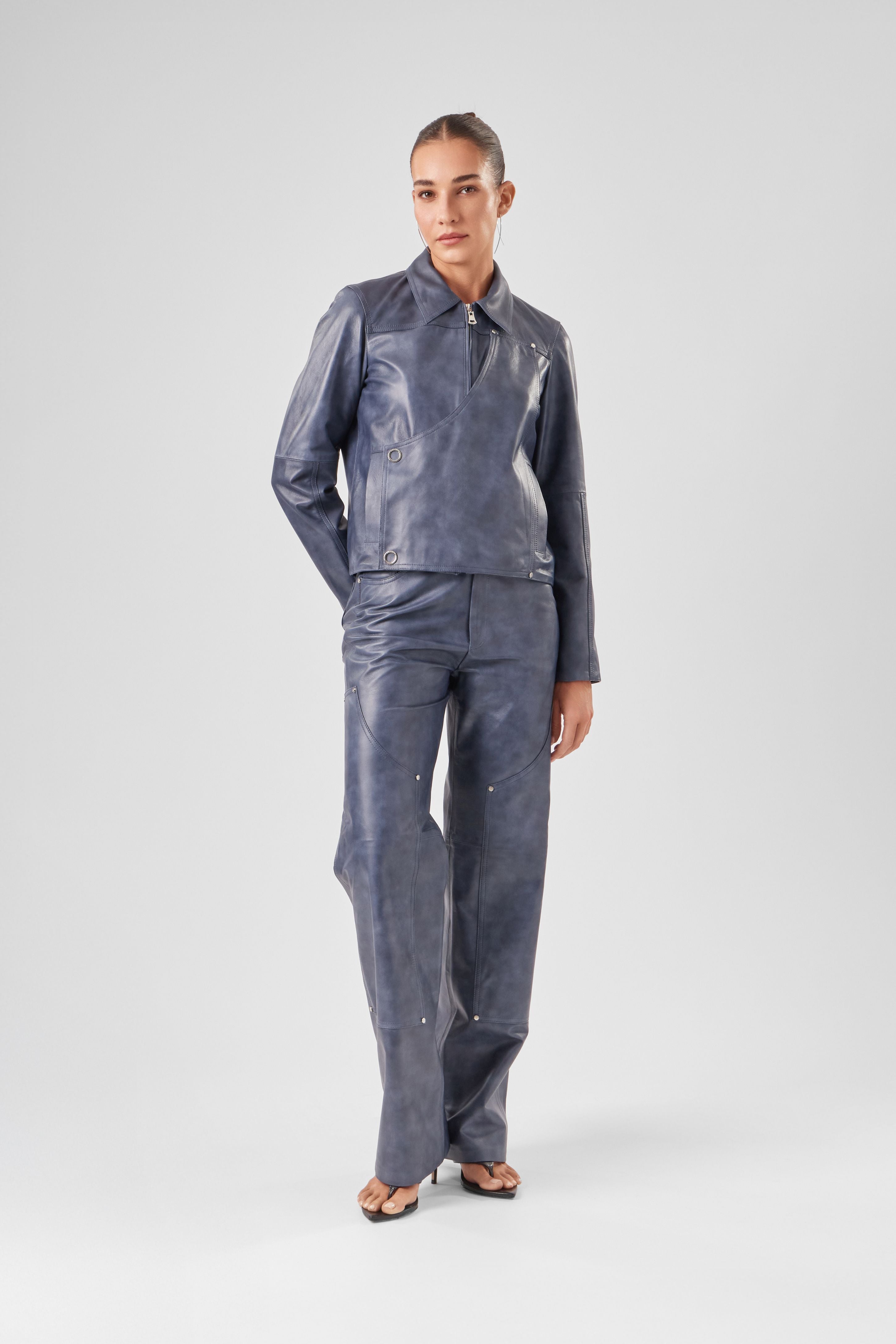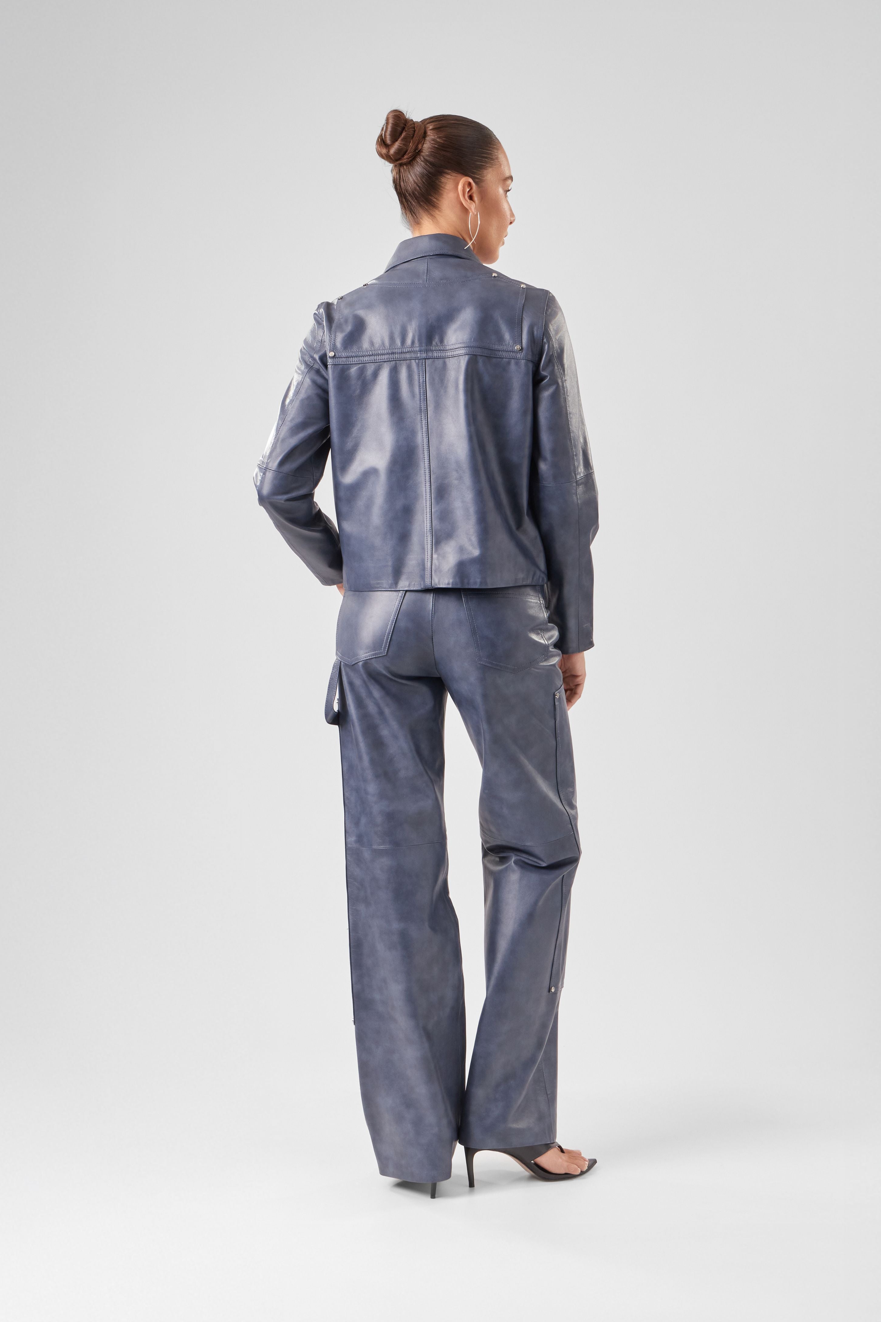 Feito em couro estonado, o Casaco Look Closer traz fechamento por zíper e sobreposição em couro que pode cobrir o zíper ou ser presa para usar a peça aberta. O modelo tem shape reto, bolsos frontais e detalhe de recorte traseiro com rebites.
