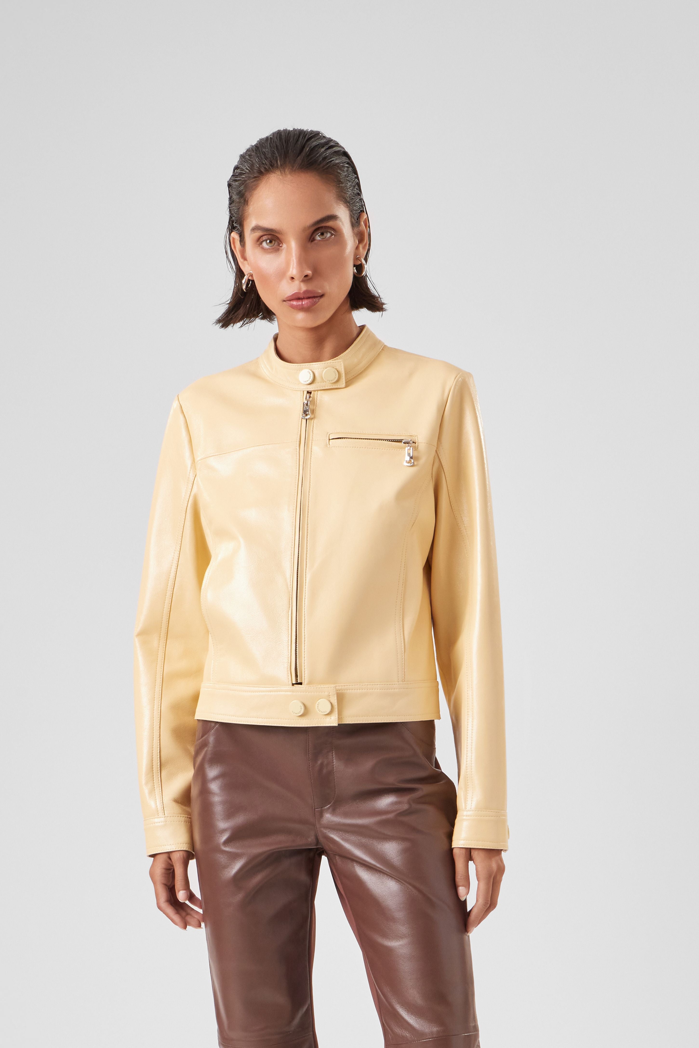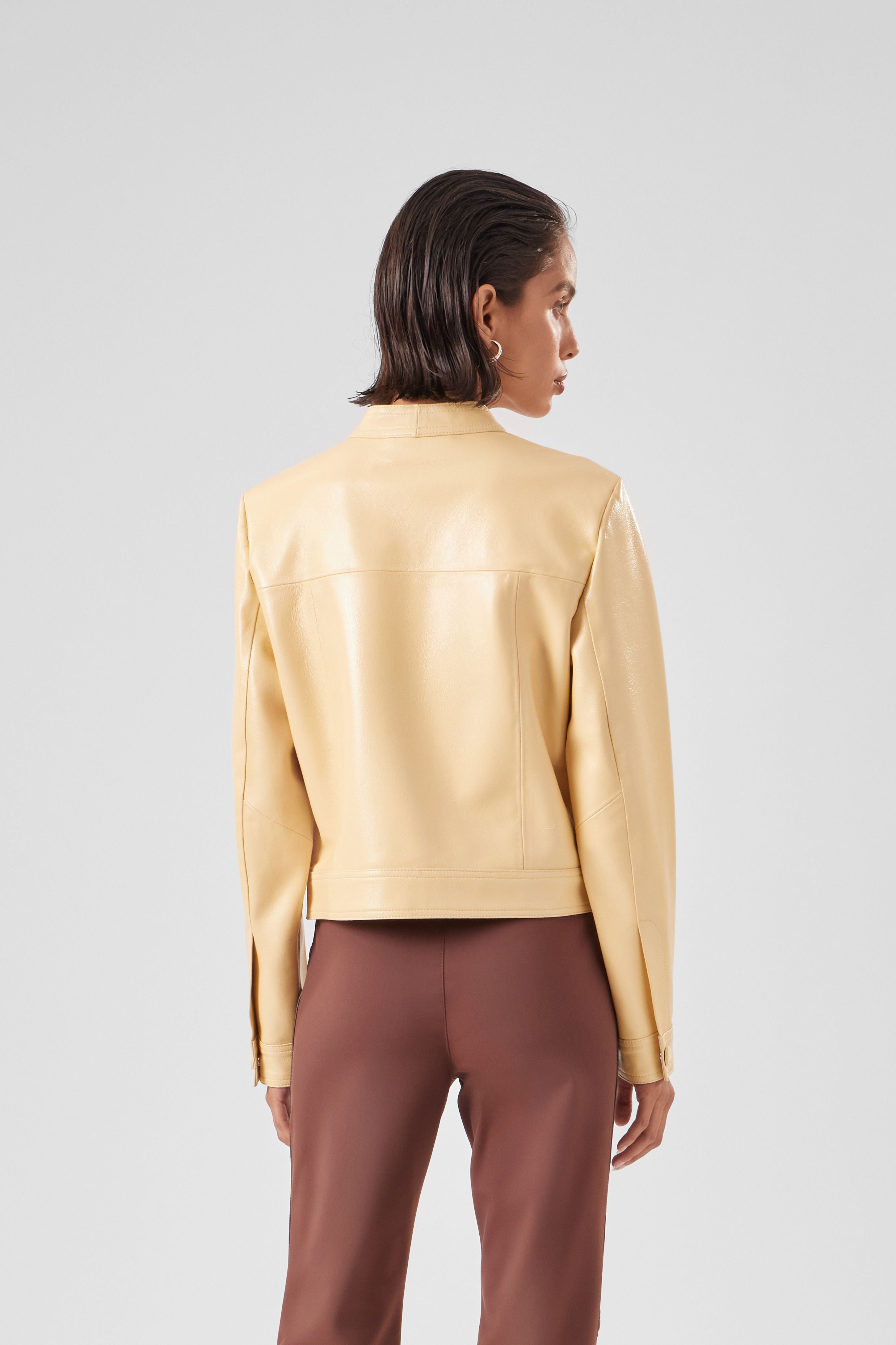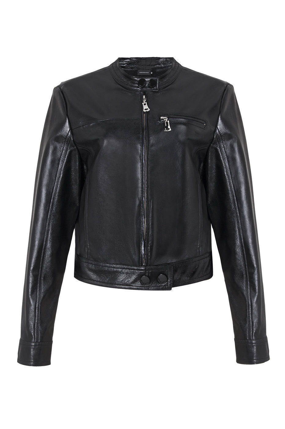 Com shape reto e comprimento médio, a Jaqueta Racer Look Closer traz fechamento por zíper, botões na gola, barra e punhos, bolso frontal com zíper e recortes.
