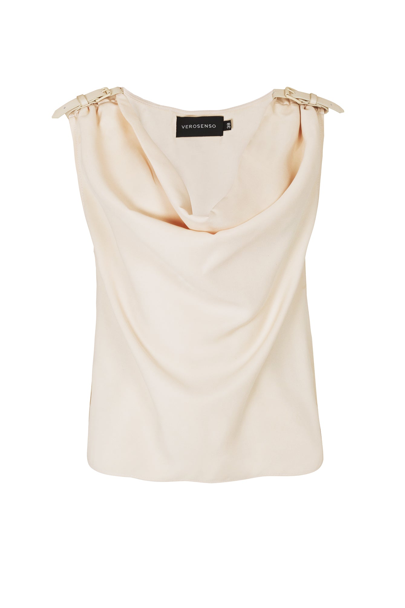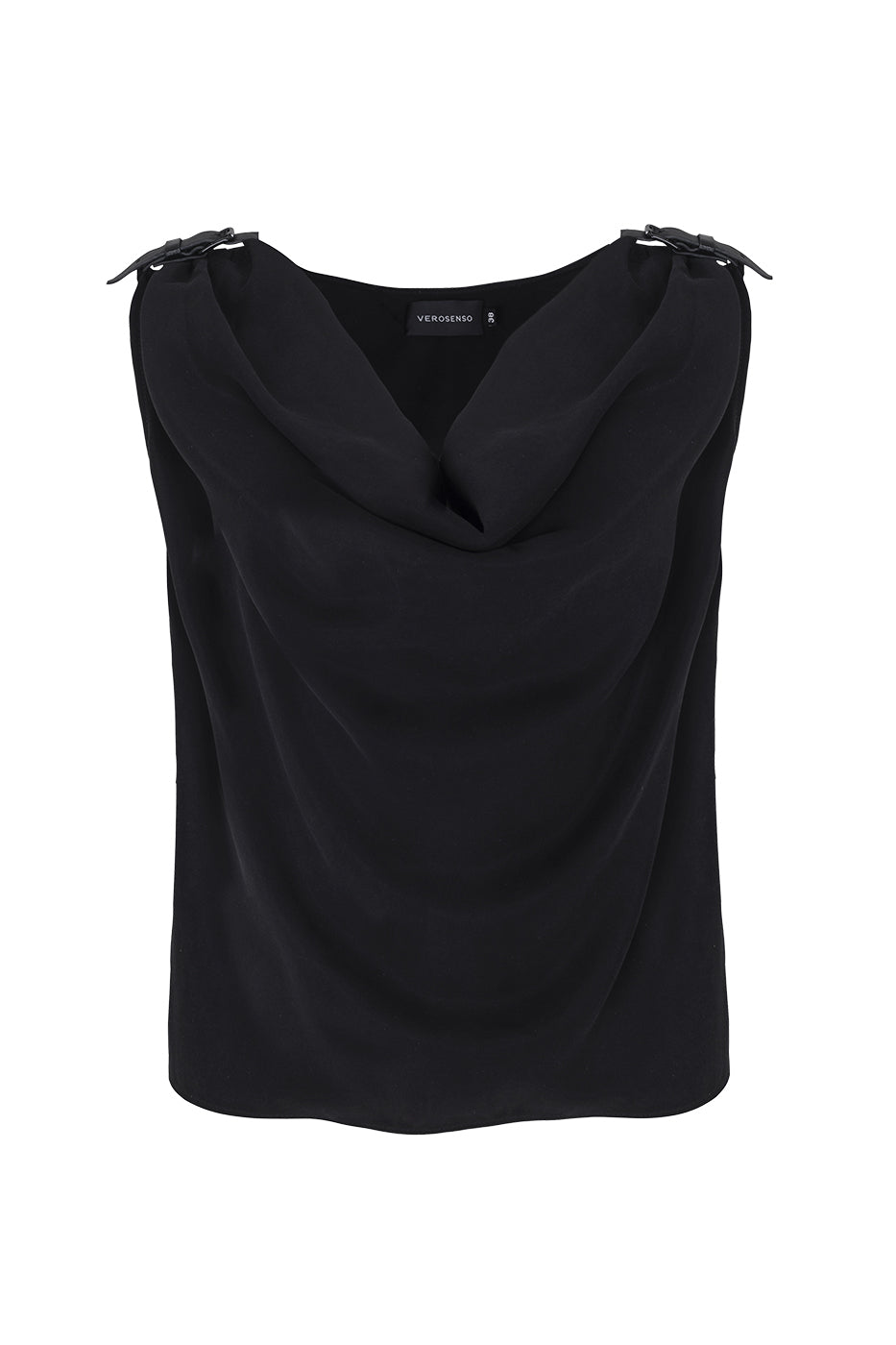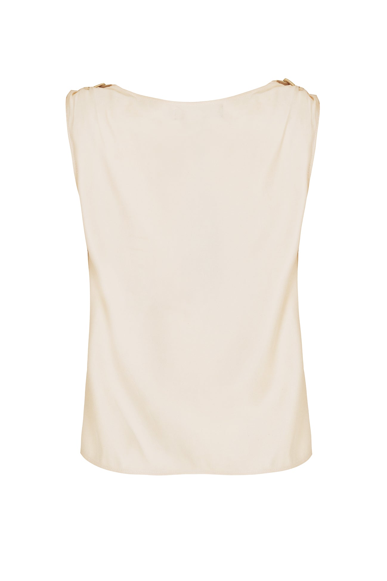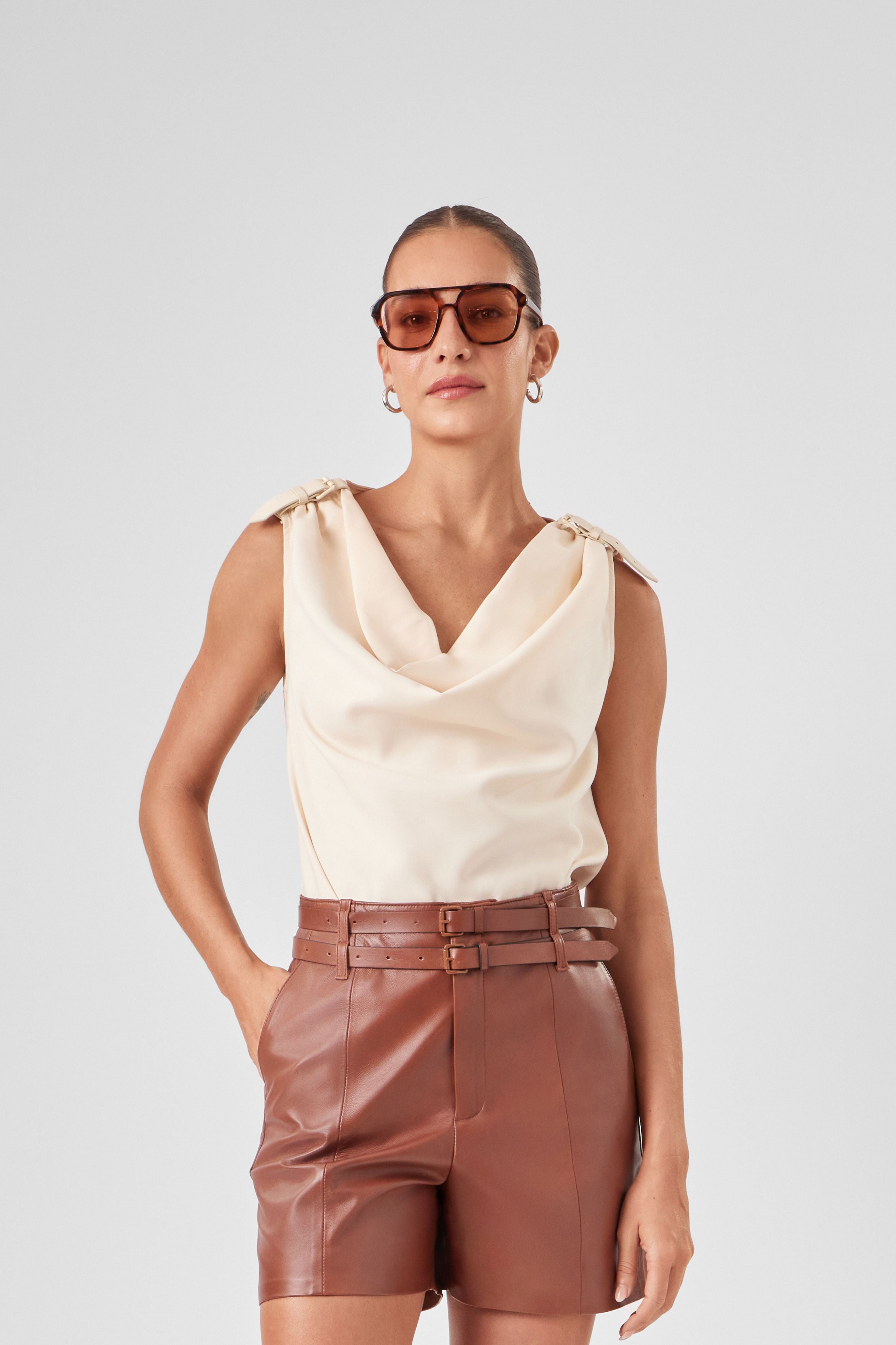 A Blusa com Cinto Mix Tencel tem shape reto e comprimento médio em tencel leve. Os cintos de couro com fivelas nas alças ajustam a peça aos ombros e complementam o visual. A gola drapeada valoriza o busto. Pequenas aberturas laterais facilitam o vestir.