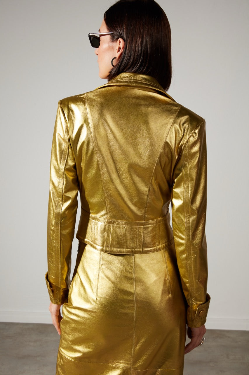 A Jaqueta Soireé da Verosenso tem shape acinturado, cós na barra, ombreiras e enfeites frontais em zíper. Ideal para looks ousados e criativos.