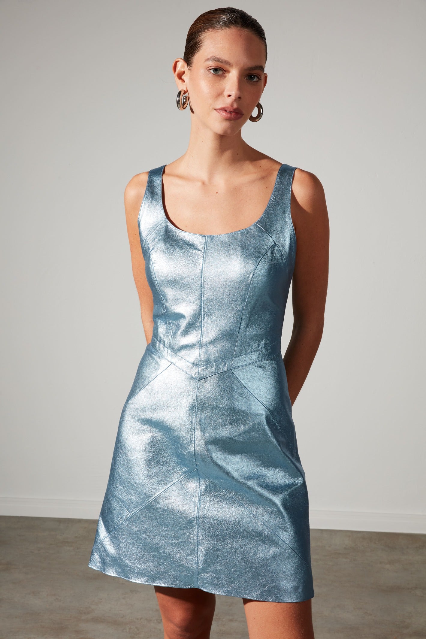 O Vestido Éclat Metal proporciona um caimento fluido e elegante. Confeccionado em shape levemente evasê, decote em U, fechamento por zíper e botão nas alças. É a escolha perfeita para eventos noturnos.