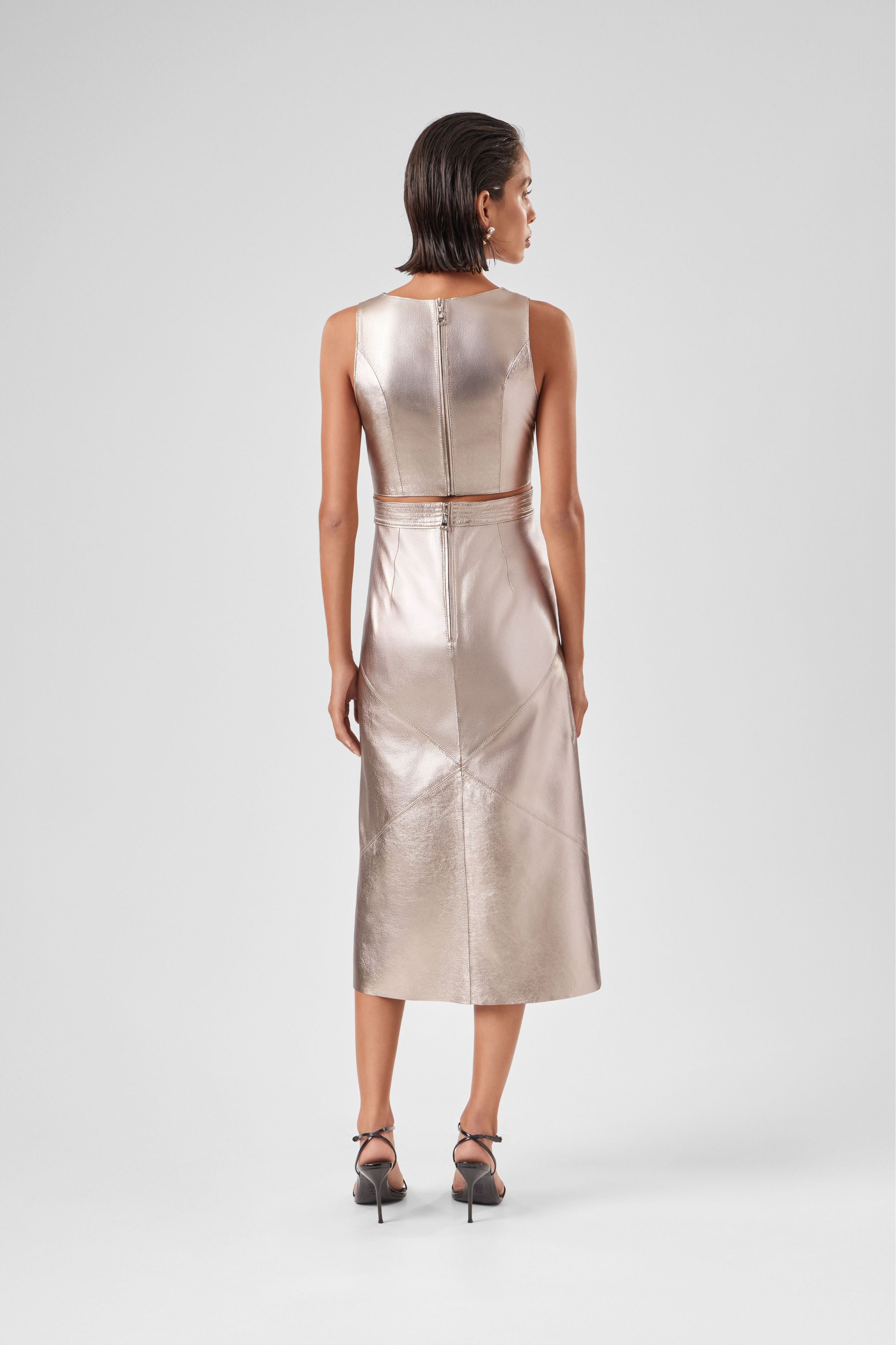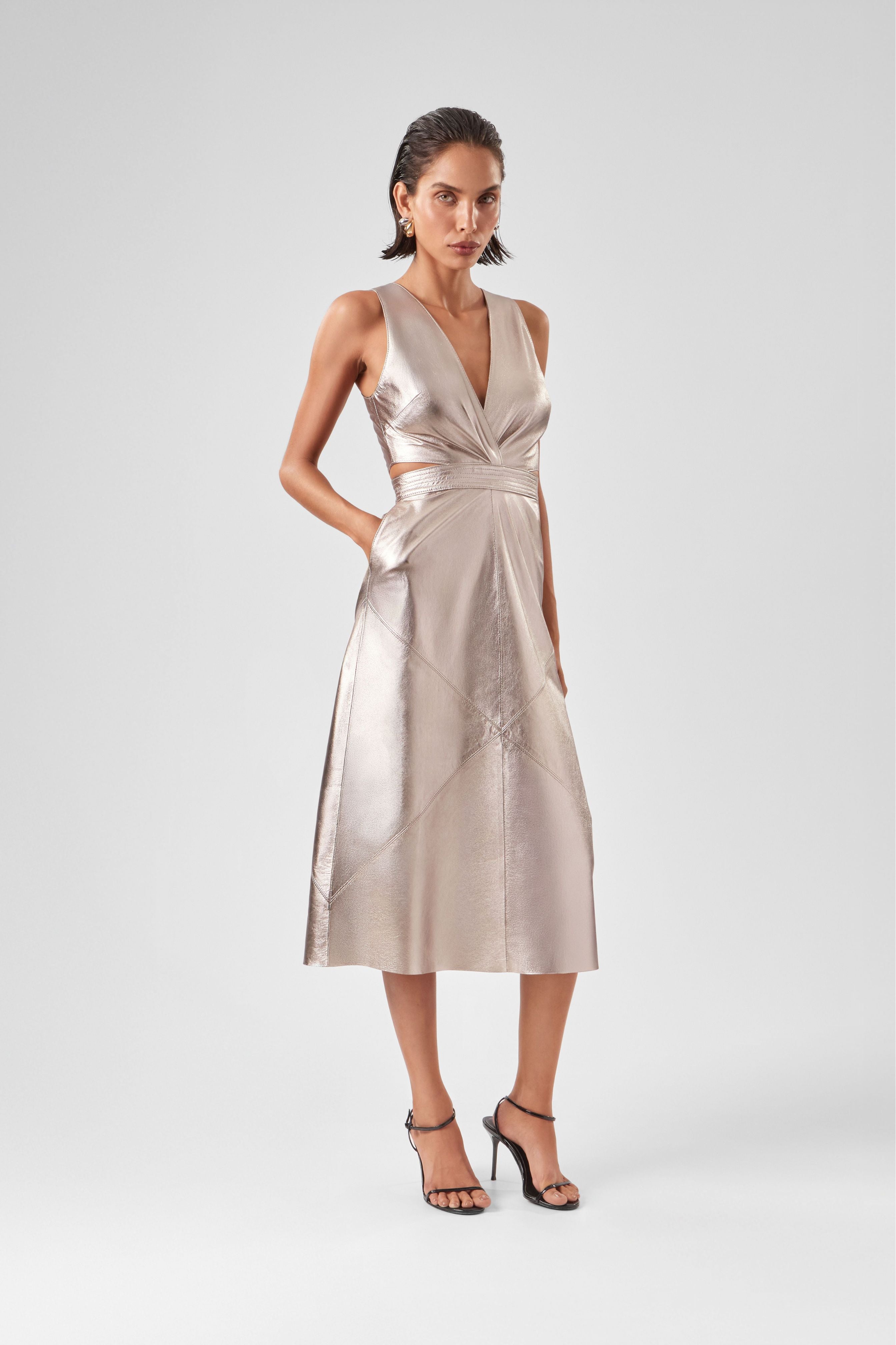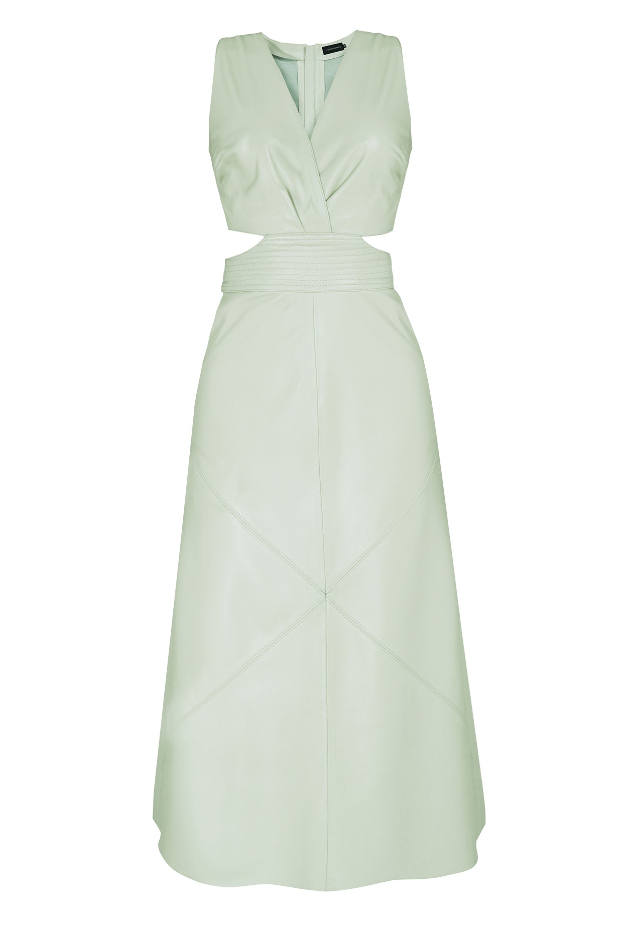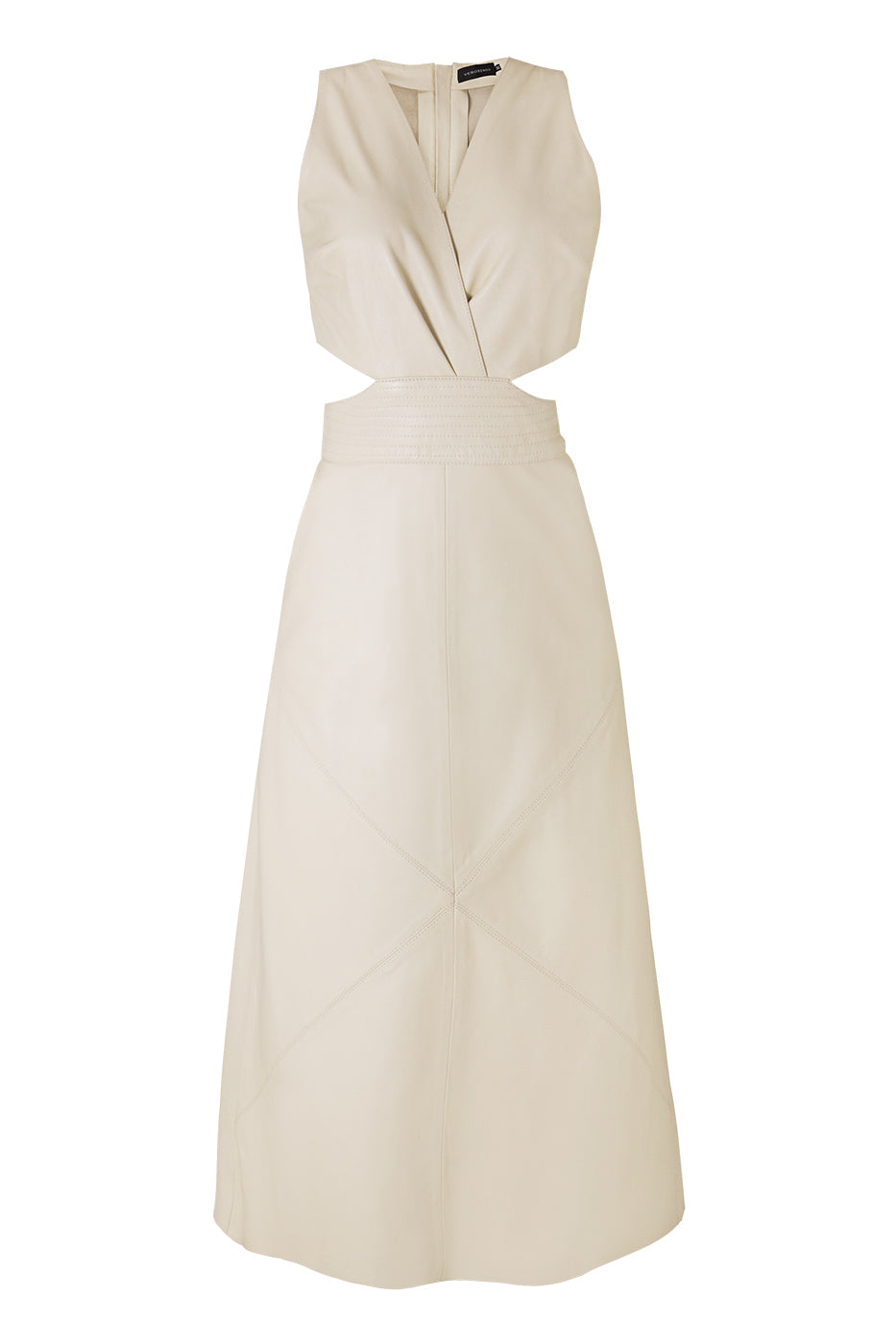 O Vestido Midi Cut Out Off Screen apresenta comprimento midi, busto ajustado e saia evasê. Possui decote em V transpassado, tira fixa larga pespontada na cintura e recortes vazados abaixo do busto e nas costas. Conta com recortes em X na saia, bolsos frontais e fechamento posterior por zíper.